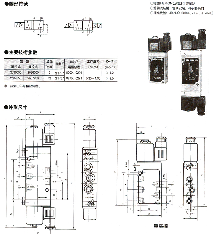 海隆系列电磁换向阀(26360,26370系列二位五通电磁阀)