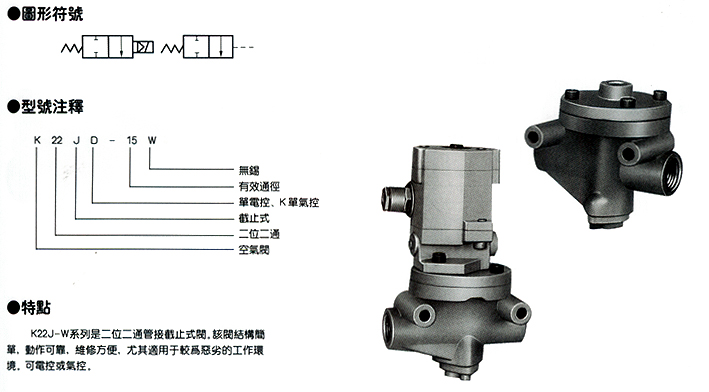 KJ系列截止式电磁阀(K22J-W系列二位二通换向阀)