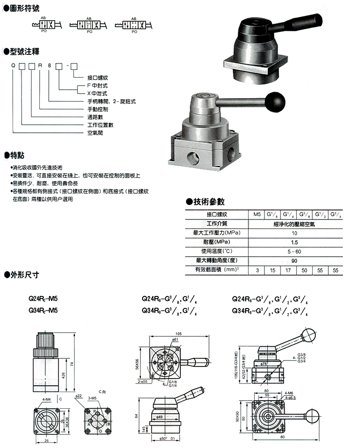 人控阀系列(Q235JR5系列二位三/四通推拉式换向阀)
