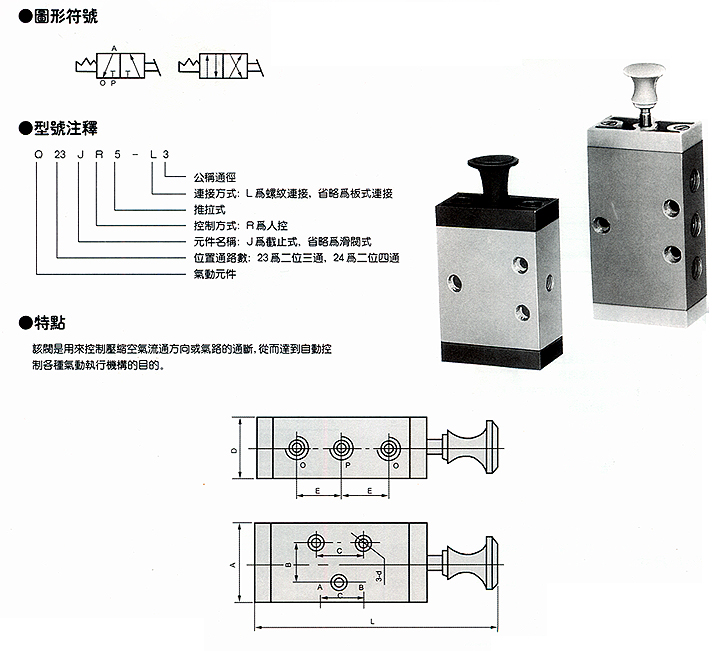 人控阀系列(Q235JR5系列二位三/四通推拉式换向阀)