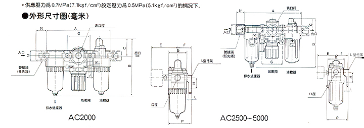*供应压力为0.7MPa(7.1kgf/cm2)设定压力为(5.1kgf/cm2)的情况下。